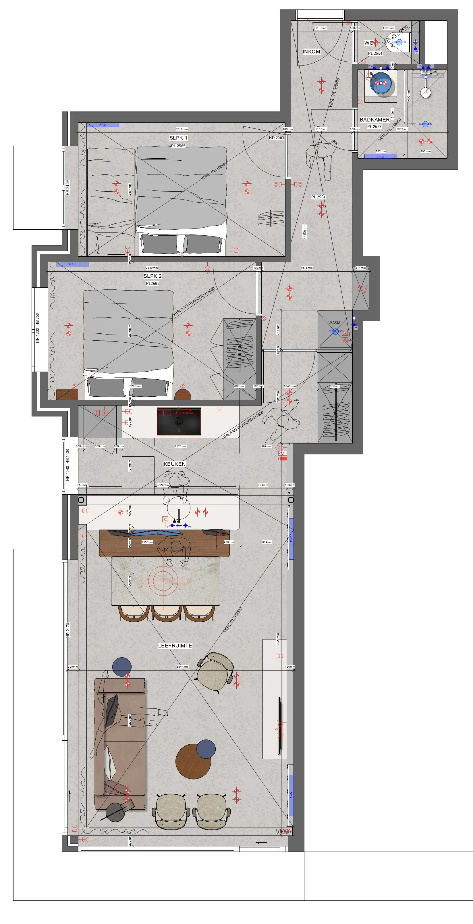 Zodra jij en jouw pand in harmonie zijn, kiezen we samen de finale materialen. Vervolgens stellen we de uitvoeringsplannen op, inclusief alle zichten, sneden, technische plannen en verlichtingsplannen. Dit zorgt voor een naadloze overgang van ontwerp naar realisatie, waarbij elk detail wordt verzorgd om jouw droomruimte tot leven te brengen.